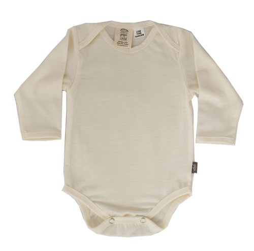 ニュージーランドの高級メリノウール100%を使った長袖ロンパースです。