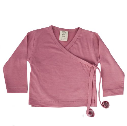 ★着物のように、前で合わせて、横をリボンで結ぶデザインで、かわいいピンクのカーディガンです。