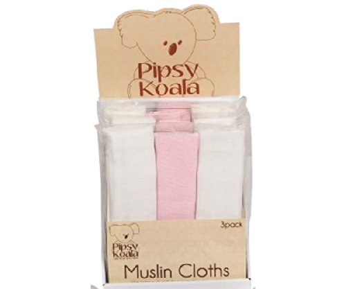 PIPSY KOALA Muslin Cloths 3 Pack (White Pink)