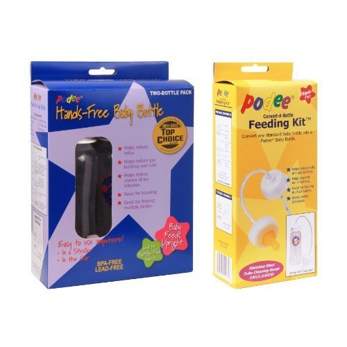 Combo Podee Baby Bottle - Double Pack Complete Handsfree Feeding System + Convert-A-Bottle Handsfree Feeding Kit by Podee