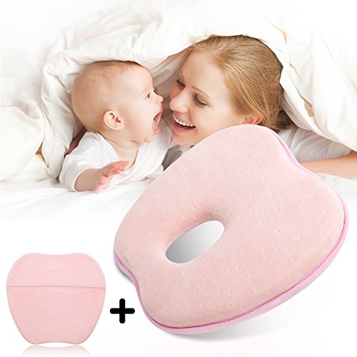 ドーナツ枕 ベビー枕 赤ちゃん枕 新生児枕 絶壁防止枕 絶壁頭矯正 頭の形を守る 取り外せる枕カバー1枚付き 枕カバー洗える 肌触りのよい生地採用 ソフト 通気性良好 0~6ヶ月のベビーにおすすめ (ピンク)