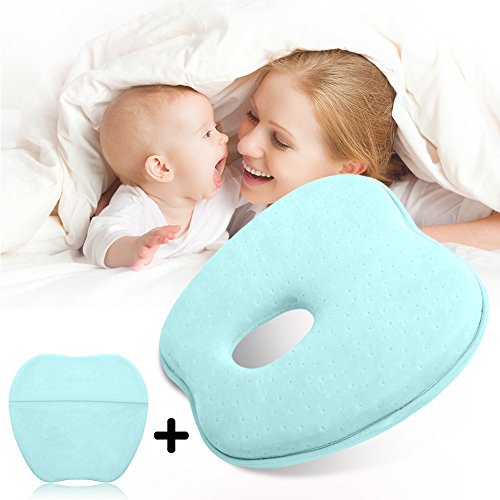 ドーナツ枕 ベビー枕 赤ちゃん枕 新生児枕 絶壁防止枕 絶壁頭矯正 頭の形を守る 取り外せる枕カバー1枚付き 枕カバー洗える 肌触りのよい生地採用 ソフト 通気性良好 0~6ヶ月のベビーにおすすめ (ブルー)