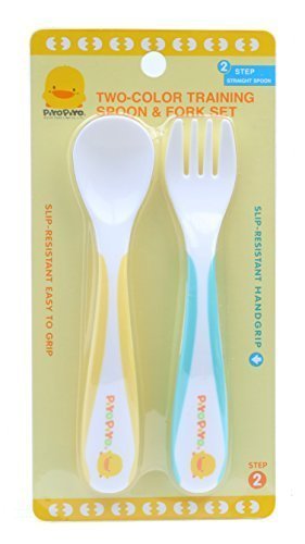 New Release By PIYO PYIO USA;Babie's Training 2 Step Straight Fork&Spoon;Slip-Resistant Easy To Grip;Special For Babies and Kids;Washable Easily