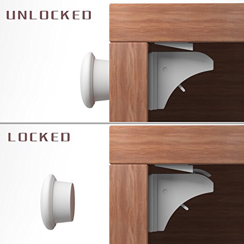 - Unlocks with powerful magnetic key. Locks are installed inside cabinet or drawer, out of sight of children and guests