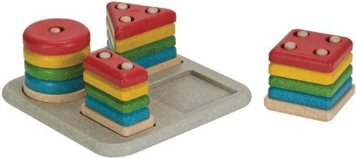 Learn math concepts! Consists of four vibrantly colored shapes that correspond to four different peg bases. Peg bases are removable for separate play.