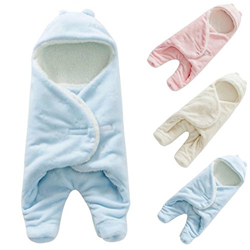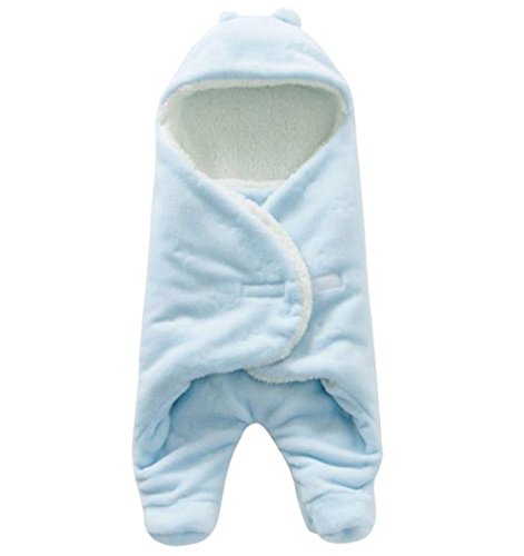 Platinum Loops 暖かい ふわふわ おくるみ 足つき ボア フリース 赤ちゃん ベビー アフガン ブランケット スリーパー 冬 お出掛け (ブルー)