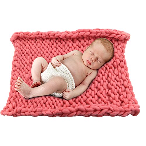 Play Tailor棒針編み 記念写真道具ブランケットベビー 新生児 赤ん坊 編み物の毛布 新生児 赤ん坊 誕生日 選べる6色ローズレッド