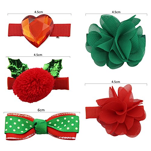 - 【パッケージ内容】赤いチュールヘアクリップ*1点 緑チュールヘアクリップ*1点 赤いボールヘアクリップ*1点 水玉*1点 ハート*1点
