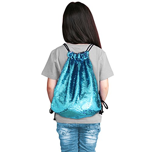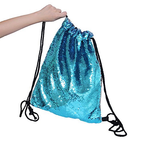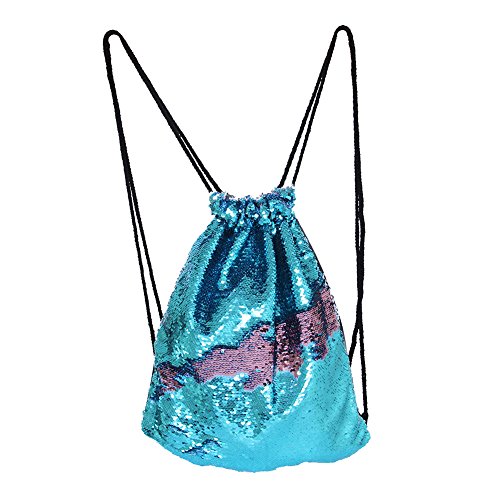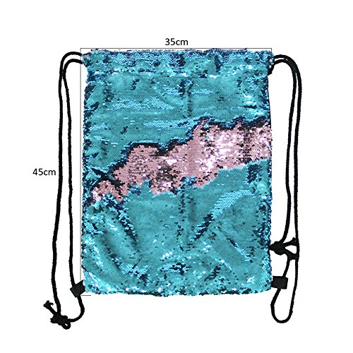 Play Tailor スパンコールナップサック ジムサック おしゃれ巾着バック 通学 通勤 部活 ショッピング ブルー/ピンク