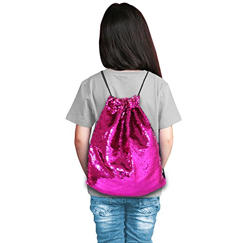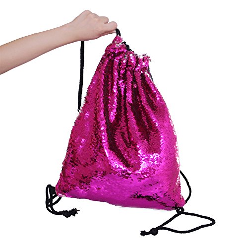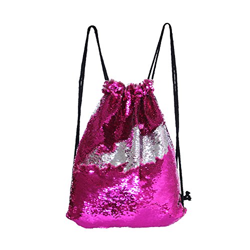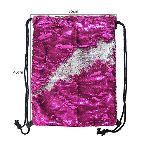 Play Tailor スパンコールナップサック ジムサック おしゃれ巾着バック 通学 通勤 部活 ショッピング ローズレッド/シルバー