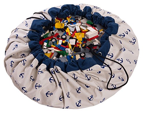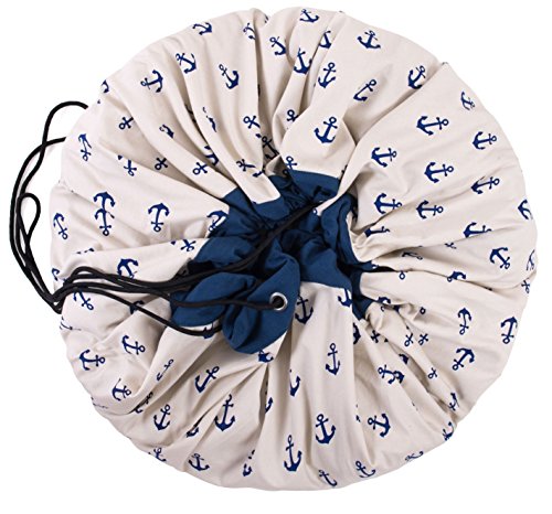 Play & Go子供巾着遊びマットとおもちゃオーガナイザーストレージ55 "バッグ – ポータブルコンテナの保存Kids Toys – ブルーアンカー