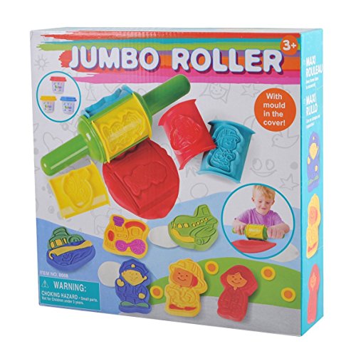 Jumbo Roller allows your child hours of fun and creativity. Roll, create and mold your favorite clay dough designs with this Jumbo Roller. 3 colors dough included. Red, blue and yellow.