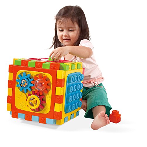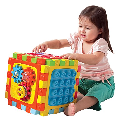 This six-sided wonder provides hours of brightly colored fun and motor skill development. Assembled as a cube or mat, with included building bricks, this easy-transport, easy-cleanup set is a treasure trove of activity.