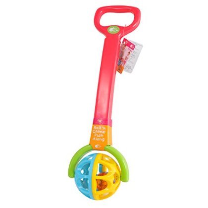 Have your pre walker learn to walk and balance himself while jingling the small balls and bells inside the rolling ball. Watch your walker strengthen her gait and balance with this Roll 'n Chime Push Along.