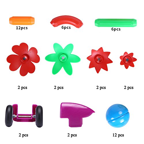 - 磁気ビルディング・ブロック12個を含めるセットショートSTRIGHT磁気ロッド6個、ロングSTRIGHT磁気ロッド、曲げマグネット6個短いロッド, 12非磁気中空球、8つの磁気花2輪と2のCAB )です。
