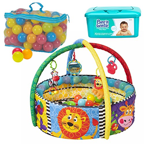 Playgro infant-to-toddlerアクティビティネストジムセンターBall Pit for赤ちゃん、幼児、または幼児用132カラフルボールと低刺激性ベビーワイプ、バンドル