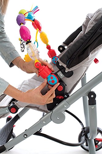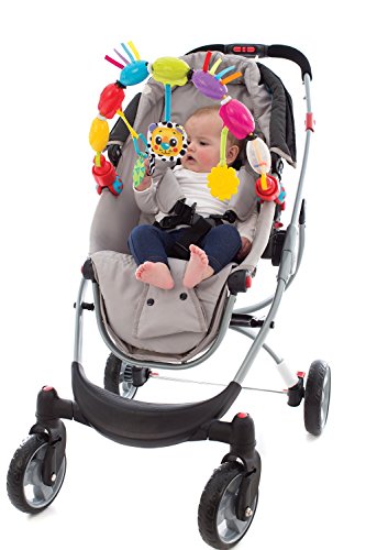This multi colored bubble Travel Play Arch is great for on the go, with easy attachment tightening clamps for the car, stroller or bouncer. The bubbles encourage motor development as baby reaches to spin them round and round. Beads rattle and fabric crinkles while the lion's head plays a fun melody. The textured teether allows for chewing.