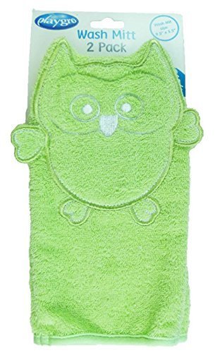 Baby Wash Mitts 9.5 x 5.5 - OWL (Lime) by playgro