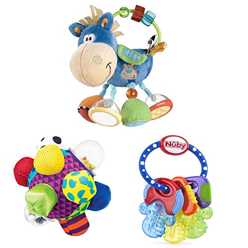 学習おもちゃバンドルPlaygro 's ToxボックスクリップClopアクティビティRattle、Sassy Bumpy Ball、とNuby PuriceジェルTeethingキーリング