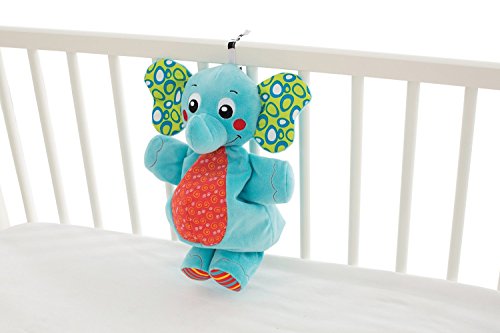 Baby will be calmed with the cuddly Elephant Musical Pull string. Simply pull the string to hear a soothing lullaby, while the bright colors and cute character offer visual stimulation.