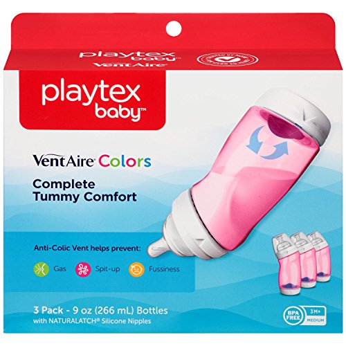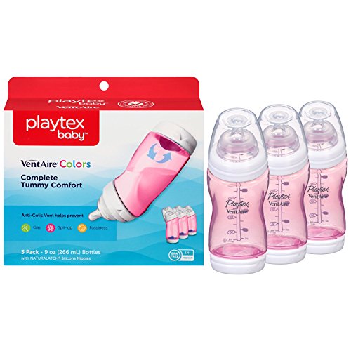 A great product to help with switching between bottles and breast feeding. This set has the essentials to help you. The Playtex VentAire Advanced wide bottles feature the micro channel vent technology that helps prevent mixing air from mixing with milk, and the natural shape wide nipple that is shaped like the breast with a wide raised, textured area that helps baby latch on for easier breast bottle transition. Plus the angled bottle supports the semi upright feeding position that helps prevent ear infections. Includes: 5 VentAire advanced wide bottles like 2 6 ounce and 3 9 ounce. Extra nipples fast flow, extra bottle caps, extra vent disks clinical study confirms that babies using new Playtex VentAire advanced bottles had less gas, spit up, colic and other discomforts than with other leading bottles. BPA free.