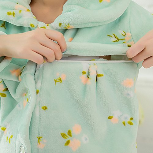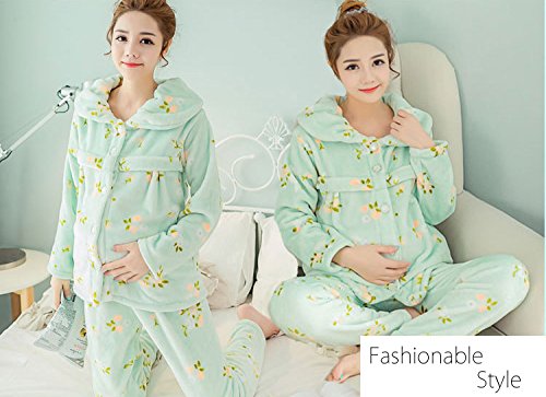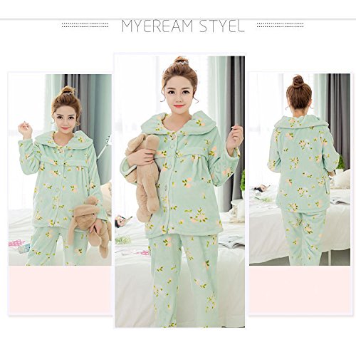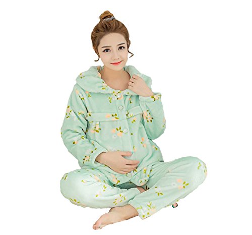 (プラムリバー)PlumRiver マタニティ パジャマ ルームウェア 上下セット 前開き アジャスター付き 部屋着 授乳服 授乳口付き ウェア 産後 セットアップ あったか もこもこ ボア 花柄 ミントグリーン Lサイズ