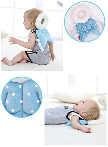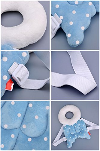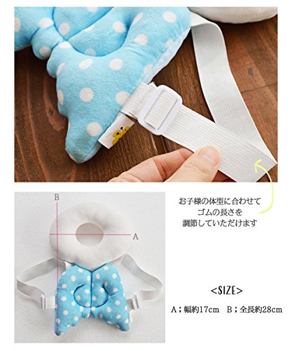 Plus Nao(プラスナオ) 赤ちゃん用 パッド付 リュック ベビー ヘッドガード リュックタイプ 頭部保護パッド 頭ガード 転ぶ 頭 セーフティグ ブルードット ワンサイズ