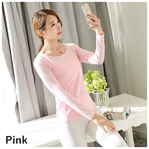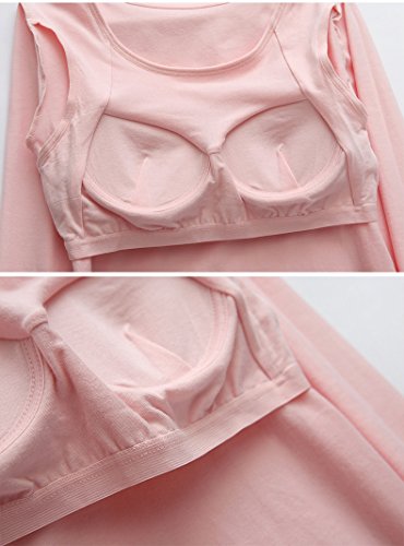 Plus Nao(プラスナオ) Tシャツ カットソー カップ付き ブラトップ プルオーバー 長袖 ラウンドネック シンプル 無地 レディース トップス L ピンク