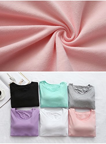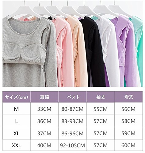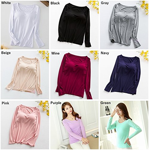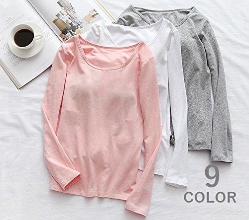 Tシャツ カットソー カップ付き ブラトップ プルオーバー 長袖 ラウンドネック シンプル 無地 レディース トップス インナー カジュアルスタイル