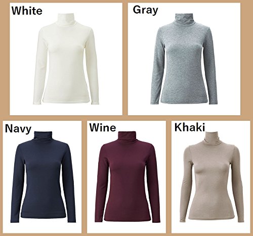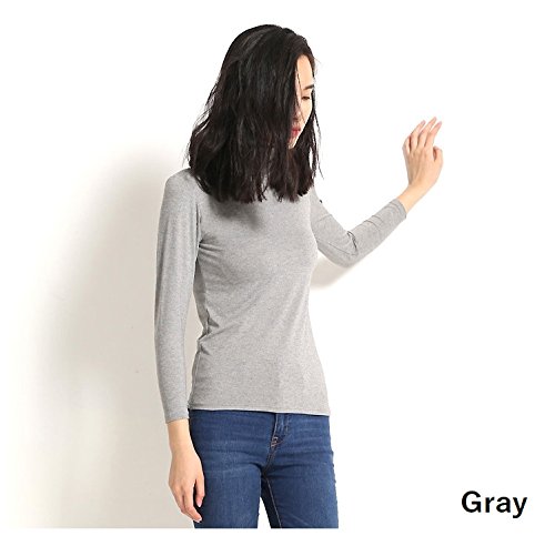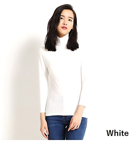 Plus Nao(プラスナオ) Tシャツ カットソー カップ付き ブラトップ プルオーバー 長袖 ハイネック タートルネック シンプル 無地 あったか L ホワイト