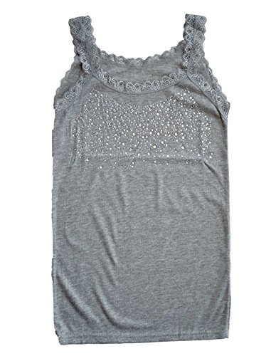 Plus Nao(プラスナオ) スパンコールキャミソールフリルレースタンクトップ胸元ビセクシーカットソー - グレー