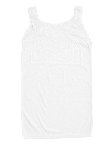 Plus Nao(プラスナオ) スパンコールキャミソールフリルレースタンクトップ胸元ビセクシーカットソー - ホワイト