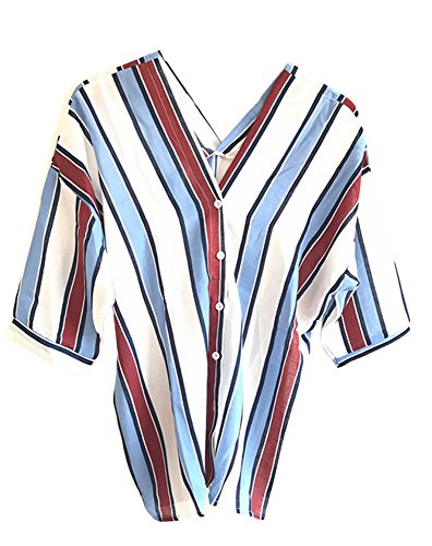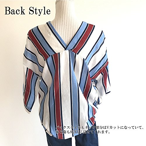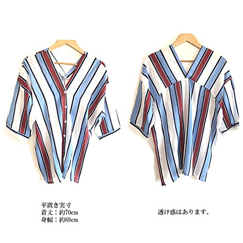 ボーダー トップス シャツ Vネック スキッパー Vネック 抜け感 トライプ ブラウス 七分袖