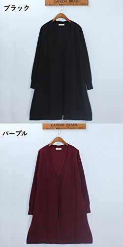 Plus Nao(プラスナオ) ロングカーディガン ニットカーディガン 長袖 Vネック Aライン トッパーカーディガン レディース トップス シンプ - パープル