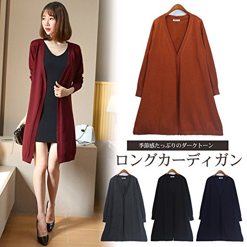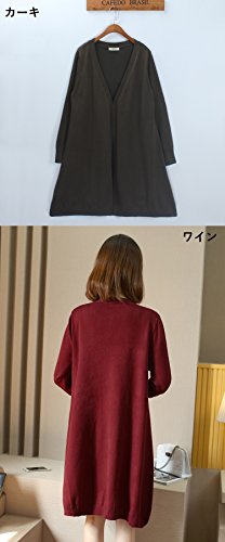 ロングカーディガン ニットカーディガン 長袖 Vネック Aライン トッパーカーディガン レディース トップス シンプル 無地 ゆったり 体系カバー