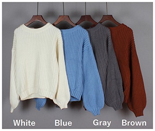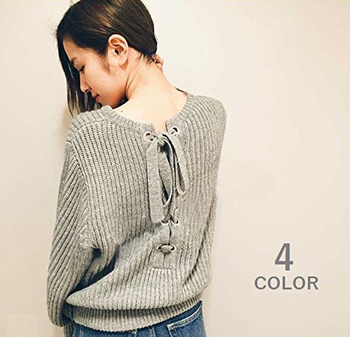 ニット セーター プルオーバー ラウンドネック クルーネック 長袖 バルーンスリーブ レースアップ レディース トップス シンプル 無地 ゆったり 体型カバー