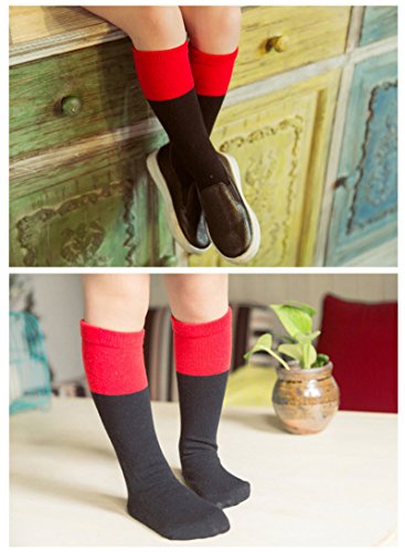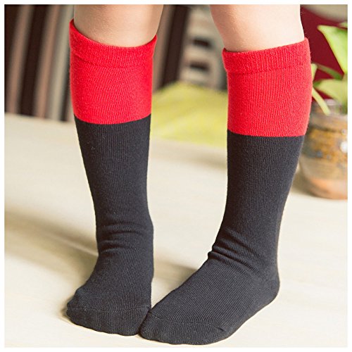 Plus Nao(プラスナオ) 子供用靴下 子供用ソックス ハイソックス キッズ靴下 ベビー靴下 キッズソックス ベビーソックス こどもソックス 女 1-3 レッドxブラック