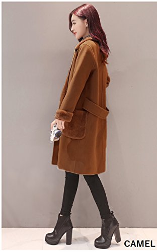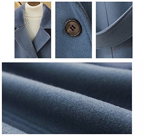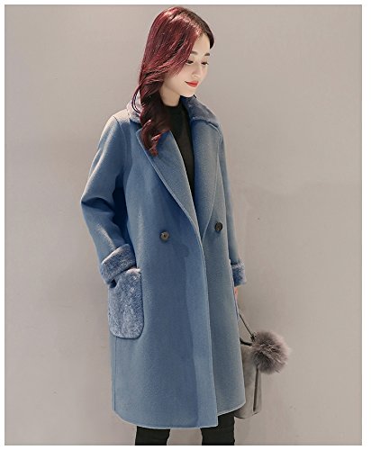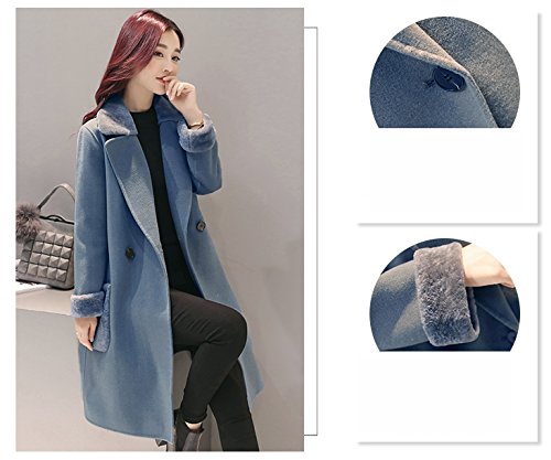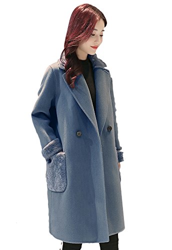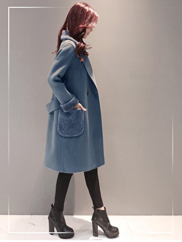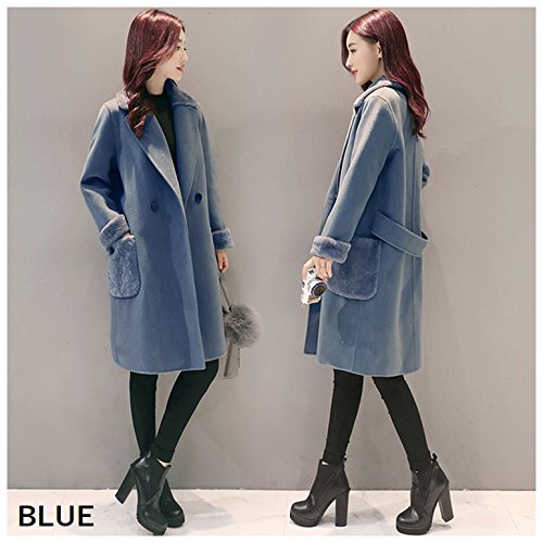 Plus Nao(プラスナオ) チェスターコート ハーフコート ひざ丈 長袖 ダブル ファー付き シンプル 無地 レディース アウター あったか 防寒 ブルー XL