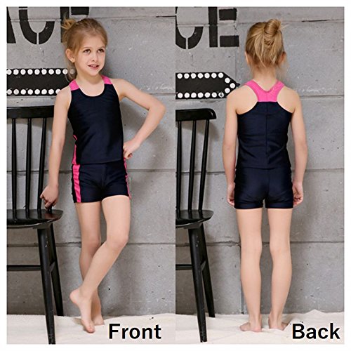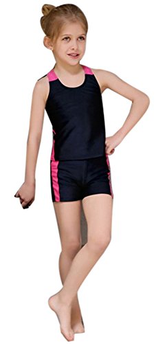 Plus Nao(プラスナオ) 子供用水着 キッズ水着 ジュニア水着 女の子用 シンプル 無地 スクール セパレートタイプ タンキニ スポーティー か ピンク 110
