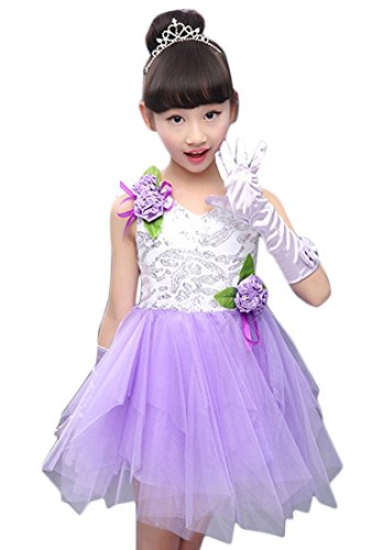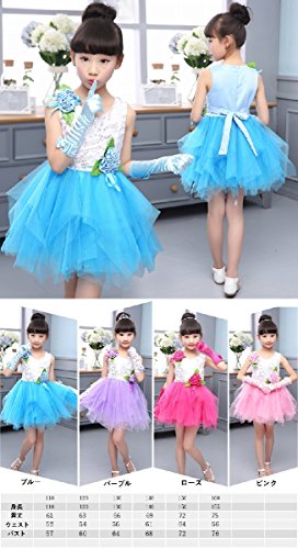 Plus Nao(プラスナオ) 子供用 ドレス フォーマル ワンピース チュールドレス フレア 女の子用 ノースリーブ クルーネック お姫様ドレス 100 パープル 130