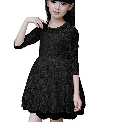 Plus Nao(プラスナオ) 子供用 大人用 ドレス ミニワンピース フォーマル プリンセスライン 長袖 総レース チュール 卒業式 卒園式 入園式 ブラック 110