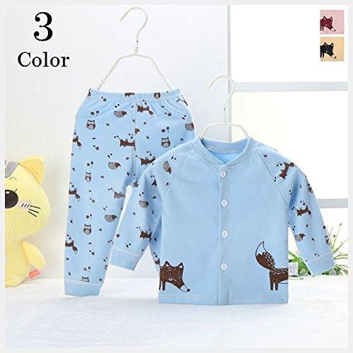 子供用 パジャマ ルームウエア 上下セット 七分袖×長ズボン イラストプリント 裾リブ 動物 狐 ふくろう 可愛い 前開き ボタン ラウンドネック 男の子 女の子 男女兼用 春秋 ピンク ブルー 黄色 イエロー ベビー キッズ ジュニア 70 75 80 90 100 110