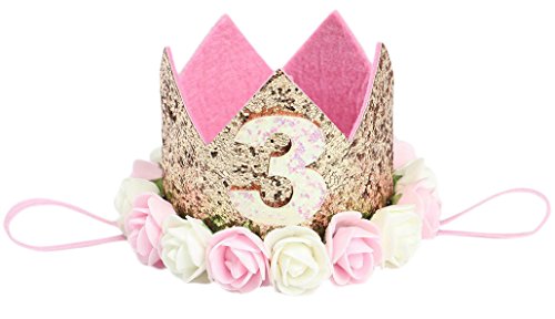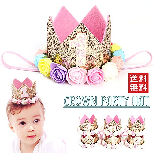Plus Nao(プラスナオ) 子供 ヘアアクセサリー 飾り 帽子 王冠 フェルト お花 バラ 誕生日 1歳 2歳 3歳 ハーフバースデー 無地 メモリアルク - Aゴールド【3】