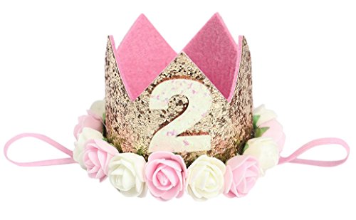 Plus Nao(プラスナオ) 子供 ヘアアクセサリー 飾り 帽子 王冠 フェルト お花 バラ 誕生日 1歳 2歳 3歳 ハーフバースデー 無地 メモリアルク - Aゴールド【2】