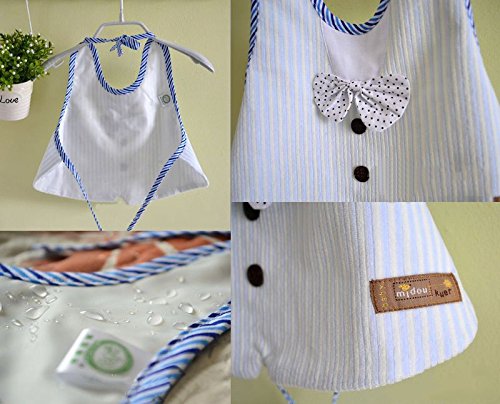 Plus Nao(プラスナオ) よだれかけ スタイ ベビー ストライプ リボン ドット イエロー グリーン ブラウン ライトブルー 小物 - LightBlue