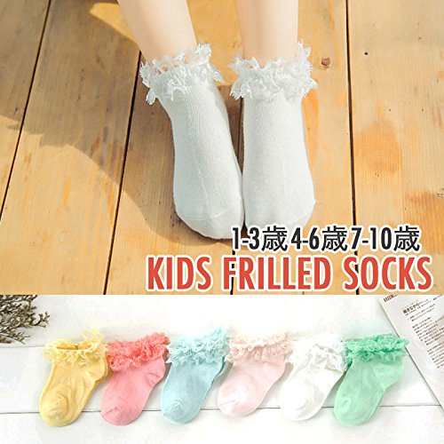 レースがかわいい子供用靴下です。(サイズについて)参考 1-3歳:約8cm 4-6歳:約10cm 7-10歳:約12cm(素材について)綿混