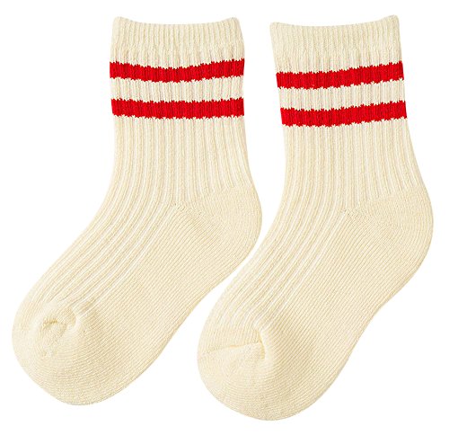 Plus Nao(プラスナオ) 子供用ショートソックス 子供用靴下 子供用ソックス ラインソックス クルーソックス くつ下 くつした キッズソックス 約4-6才 レッド