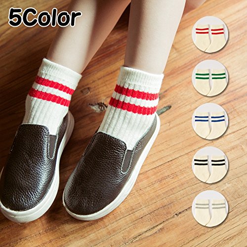 Plus Nao(プラスナオ) 子供用ショートソックス 子供用靴下 子供用ソックス ラインソックス クルーソックス くつ下 くつした キッズソックス 約7-10才 ブルー
