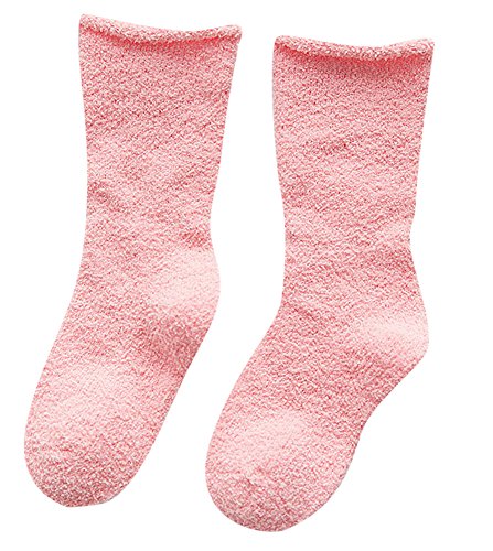 Plus Nao(プラスナオ) 靴下 ソックス キッズ 子供靴下 キッズソックス もこもこ 厚手 無地 シンプル クルーソックス 小物 カジュアル 約4-6歳 ピンク
