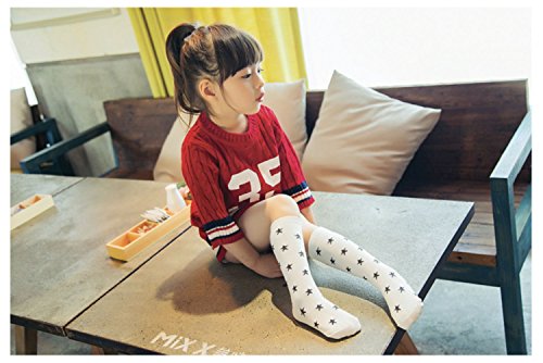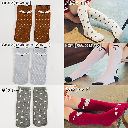 Plus Nao(プラスナオ) 靴下 ソックス ハイソックス ロング 子供用 子供 キッズ ベビー 男の子 男児 女の子 動物 ボーダー 黒 おもしろ おし 4-6歳 星【ホワイト】